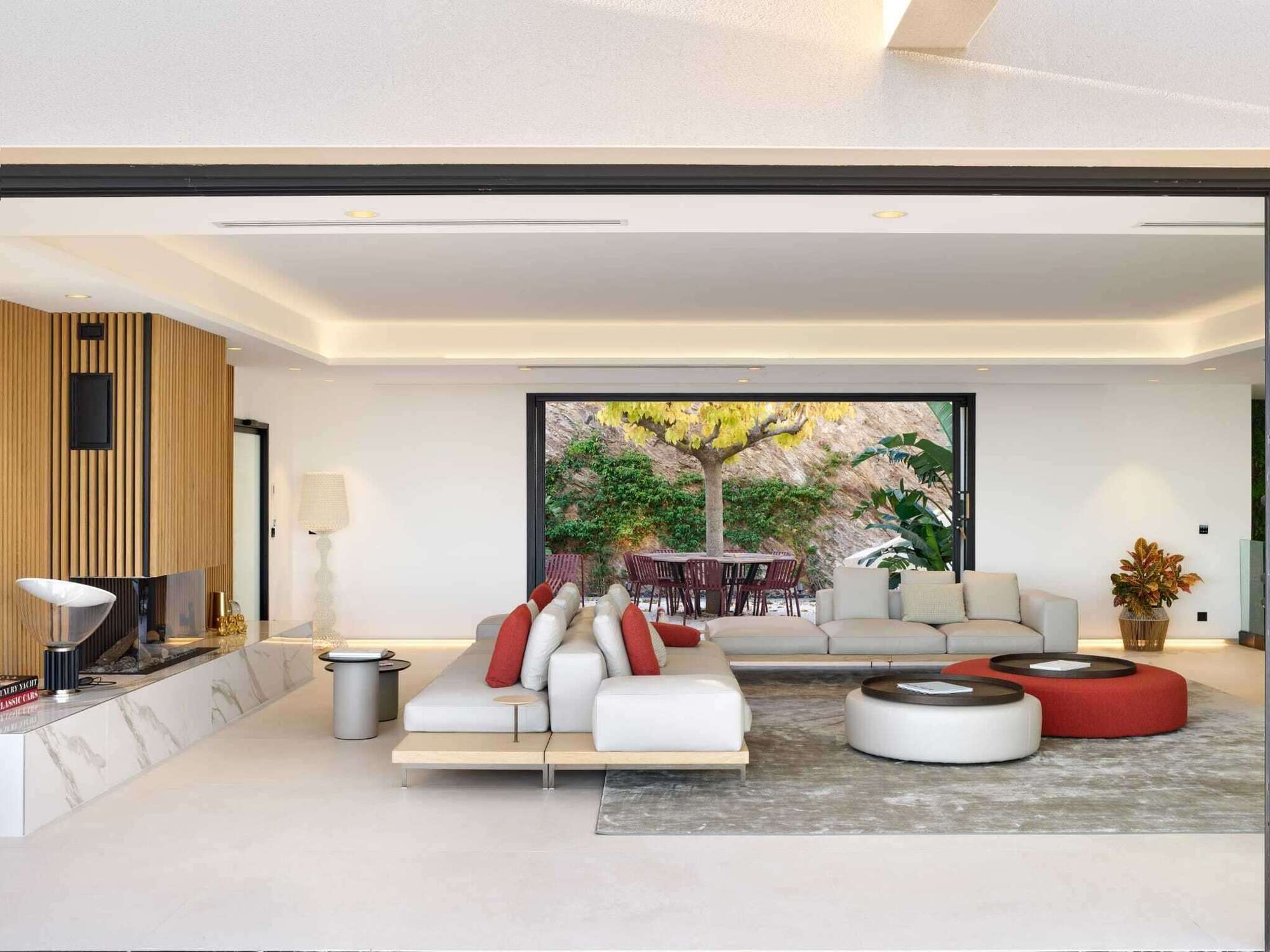 Chaque espace a été pensé pour capter la lumière naturelle et mettre en valeur les panoramas spectaculaires qui l'entourent. De vastes baies vitrées s'ouvrent sur la Méditerranée.